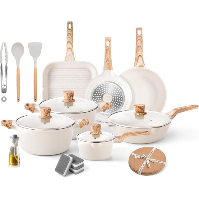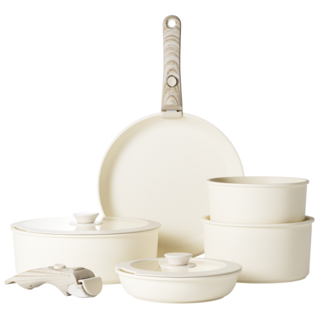 • 天然礦石塗層:不含 PFAS、PFOA、鉛與鎘,安全無毒
