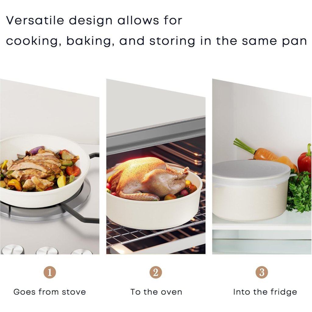 - 終極多功能性:它具有可拆卸的手柄,可讓您將其從爐灶移至烤箱,然後放入冰箱。 可輕鬆放入汽車後備箱中。 這款炊具適用於廚房、露營旅行和旅行時使用。