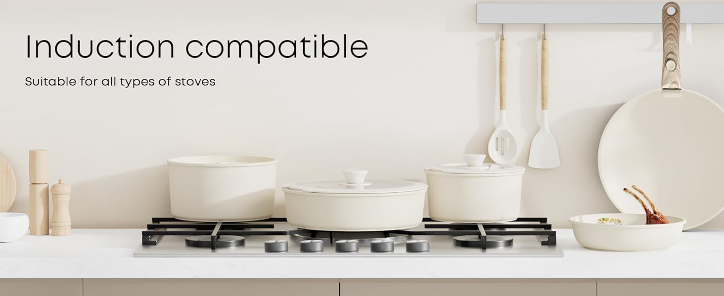 - 感應相容 - 我們的炊具組採用磁性底座,可促進均勻熱量分配,適用於所有類型的爐灶,包括電磁爐。