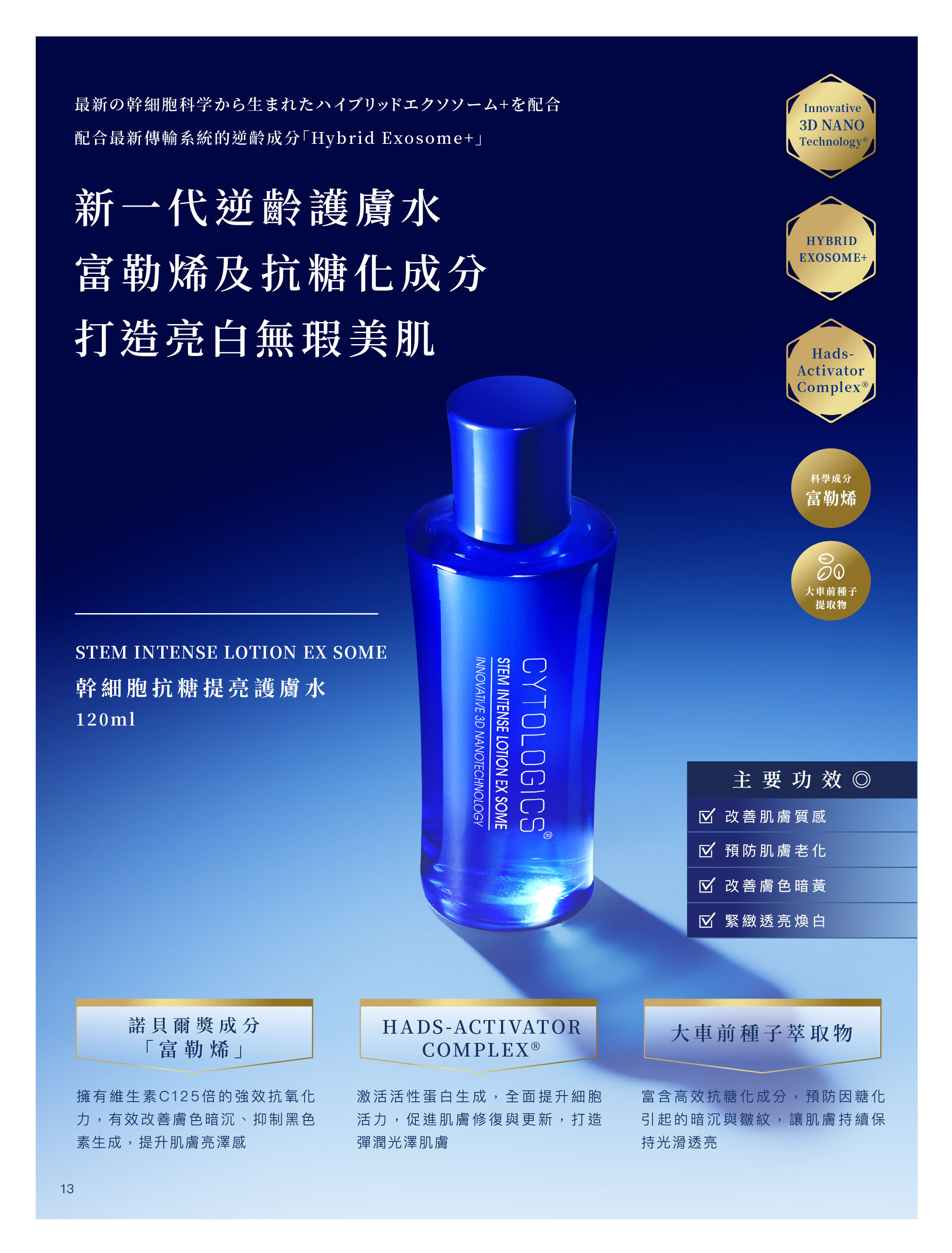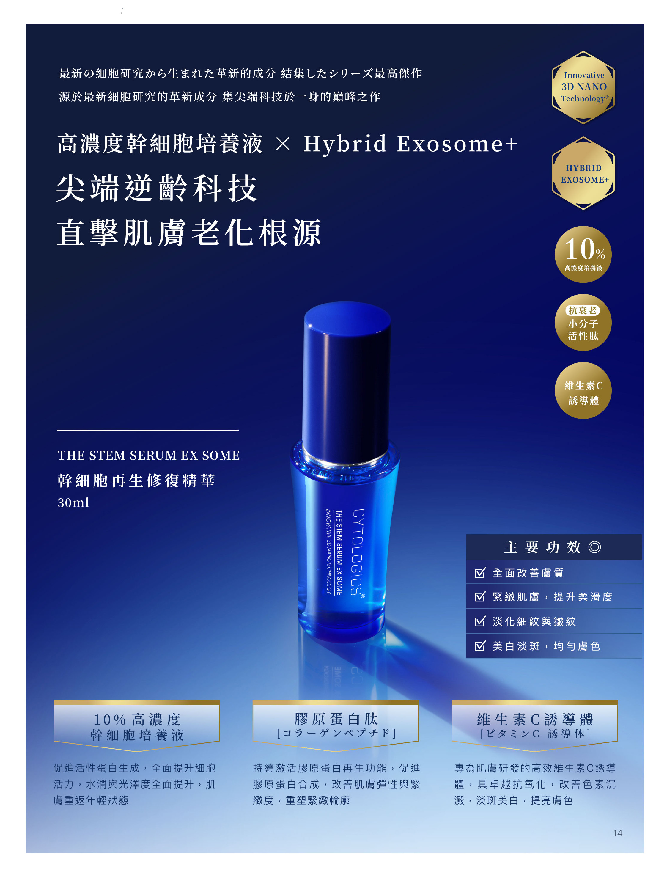 • HYBRID EXOSOME+ 外泌體技術:深層激活肌膚細胞再生,促進膠原蛋白生成,全面提升肌膚吸收力。