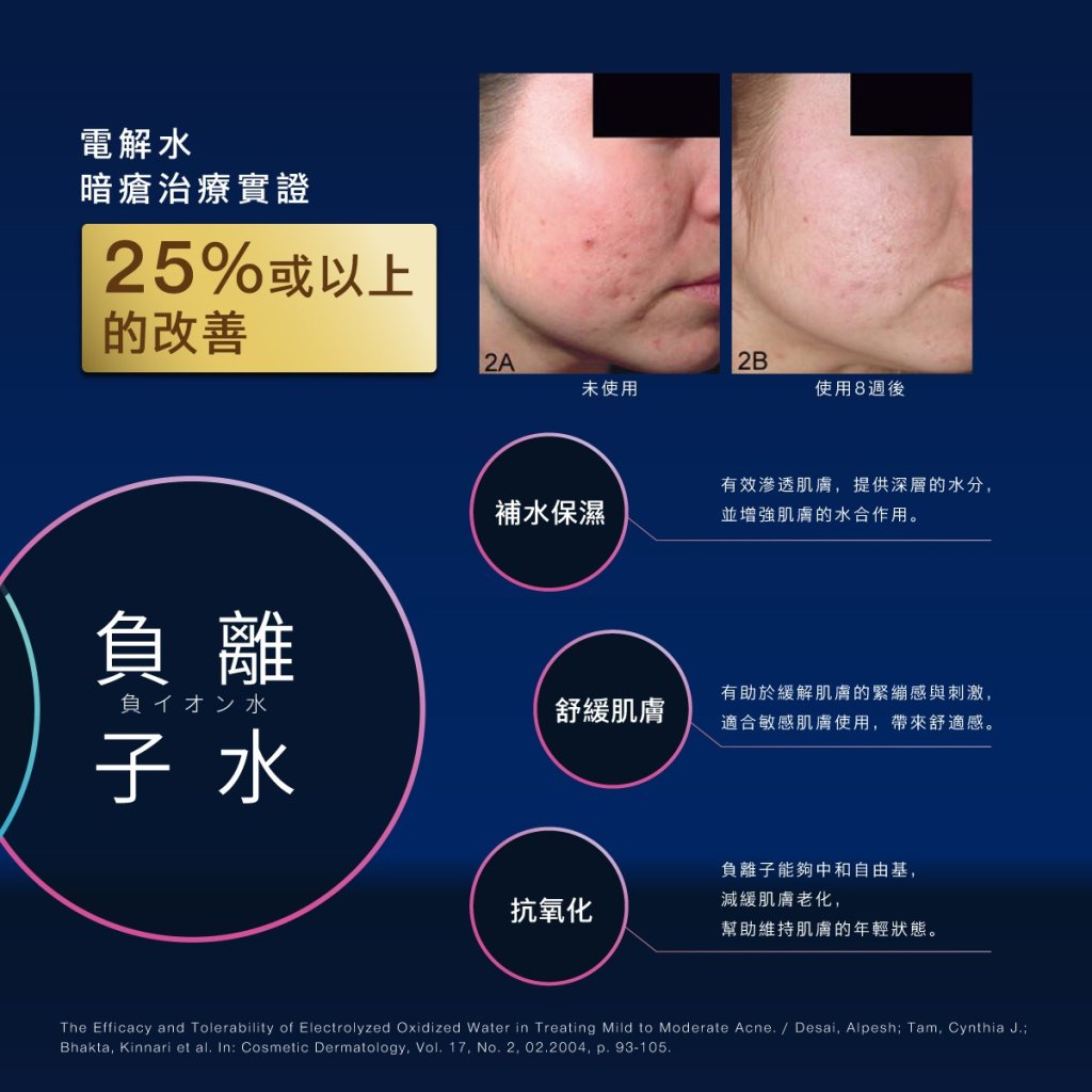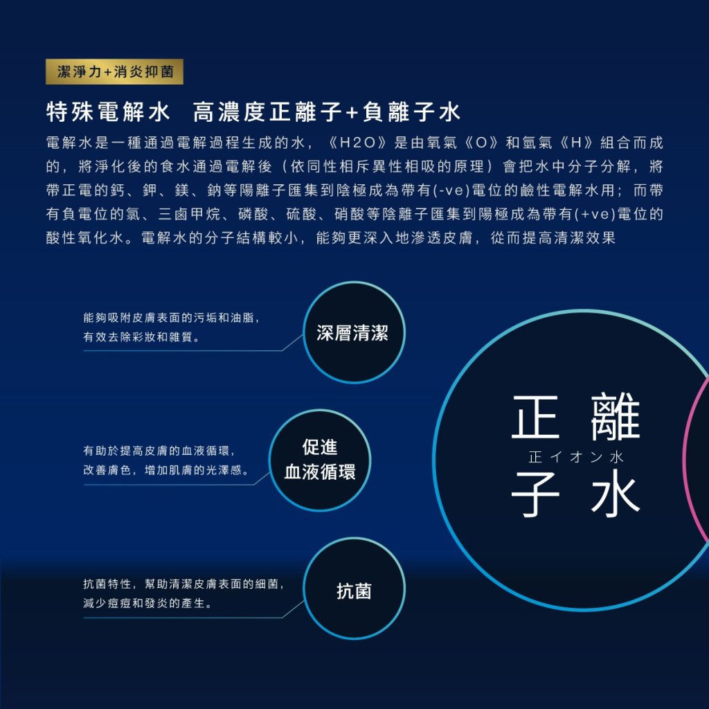 - 75%特殊電解水 × 專利滲透科技,輕鬆溶解彩妝與皮脂污垢,深層清潔毛孔,讓肌膚徹底潔淨。