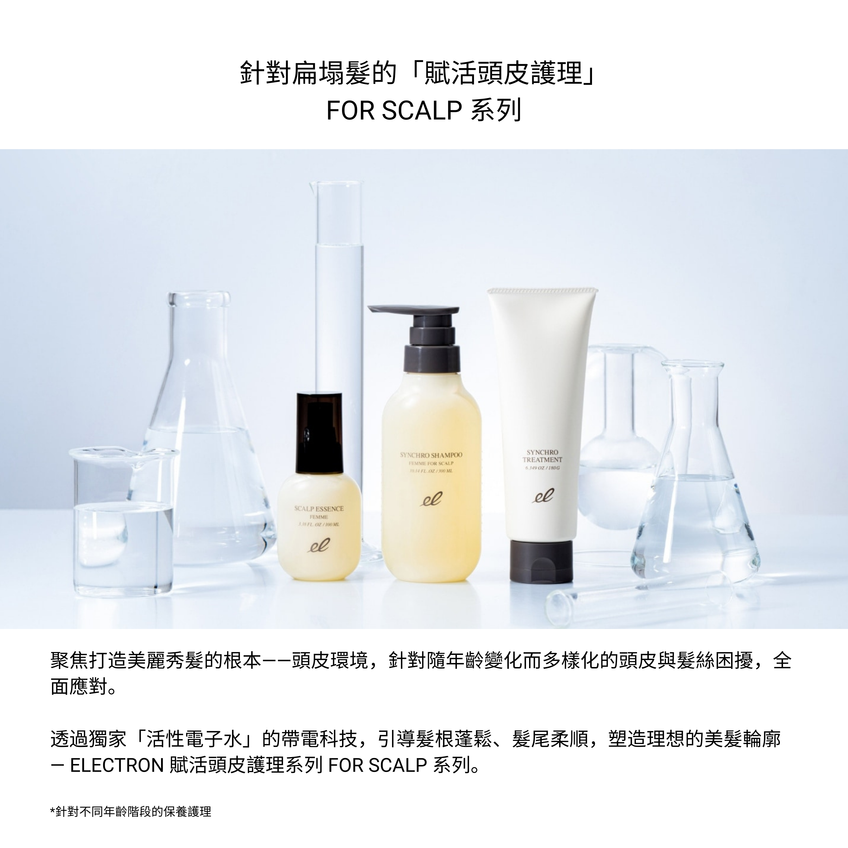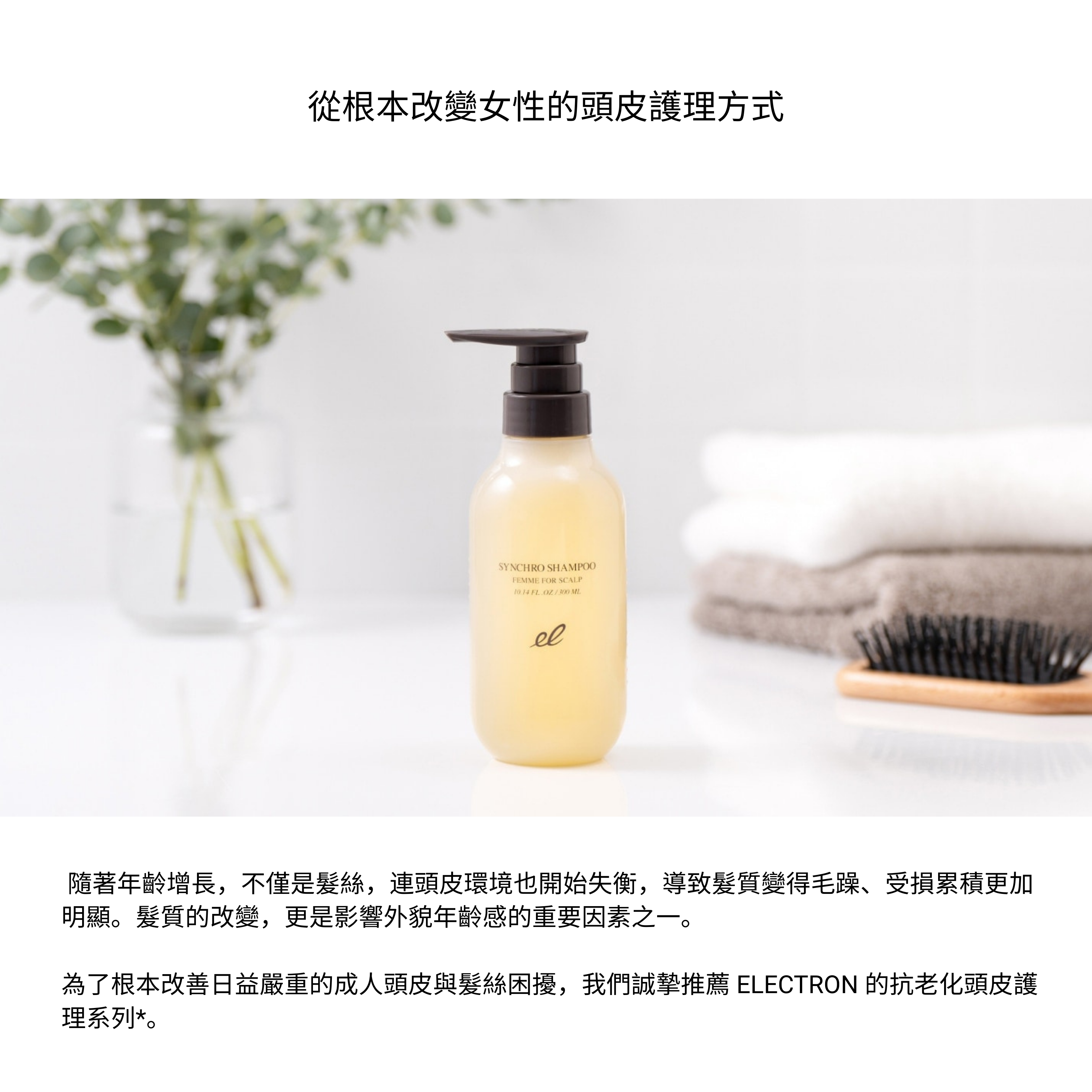 FEMME 頭皮護理套裝是一款針對熟齡女性頭皮與髮質變化所設計的高機能洗髮產品,結合活性電子水™與多重植萃修護成分,提供頭皮深層清潔與髮根強韌支撐。