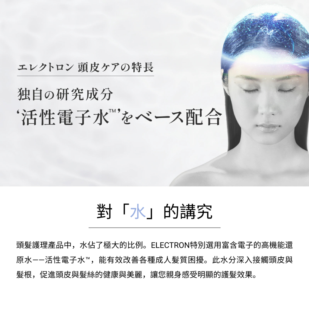 • 活性電子水™基底,潔淨皮脂+抑制異味與扁塌