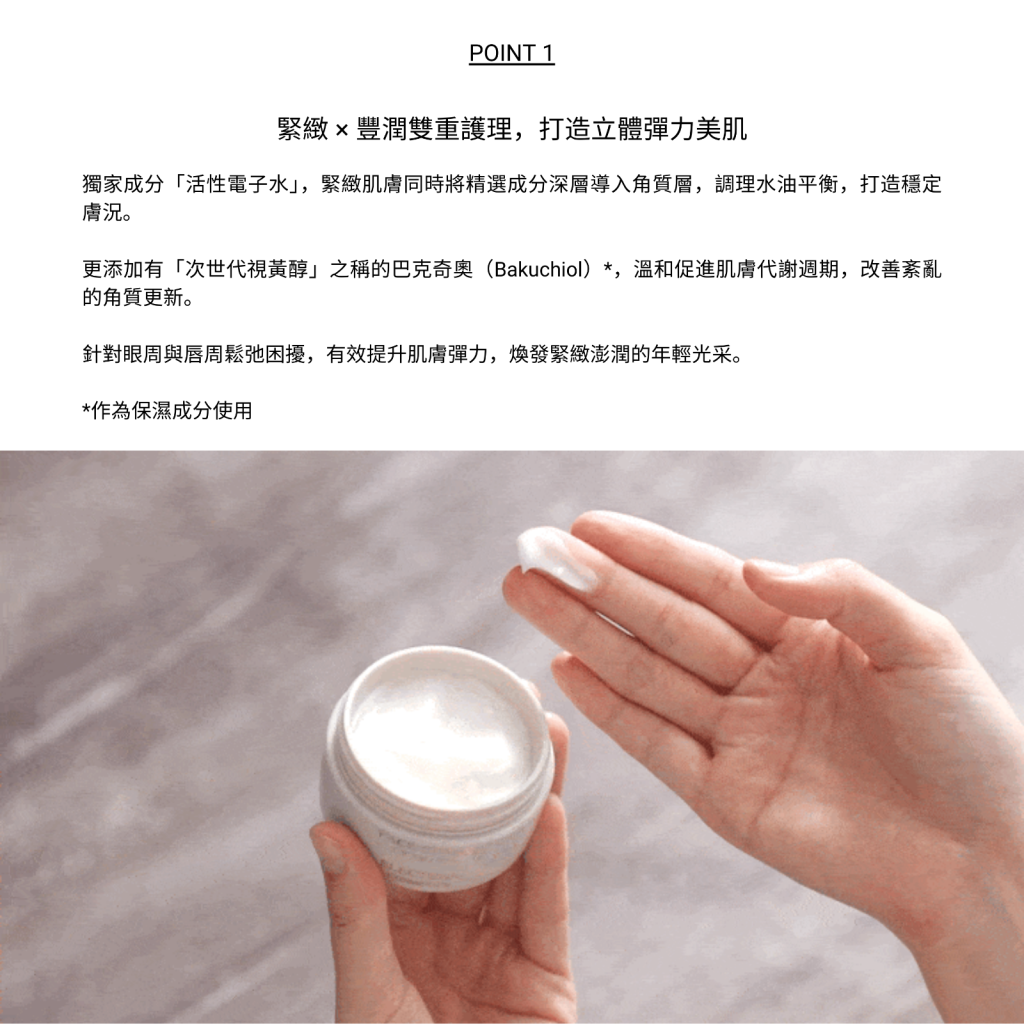 • 濃密卻不厚重的乳霜質地,能在夜間形成鎖水膜,讓肌膚一夜間回復彈潤與光澤。