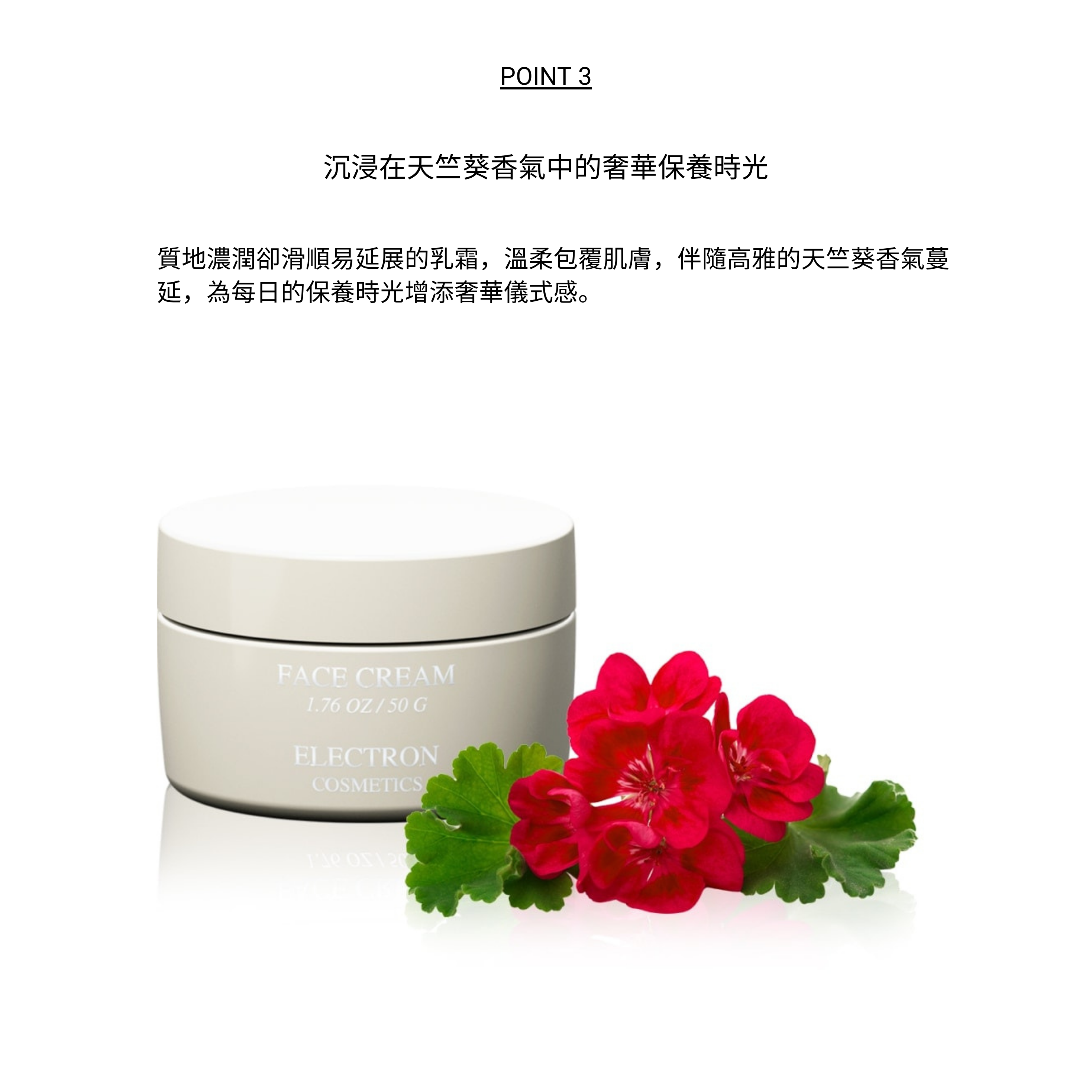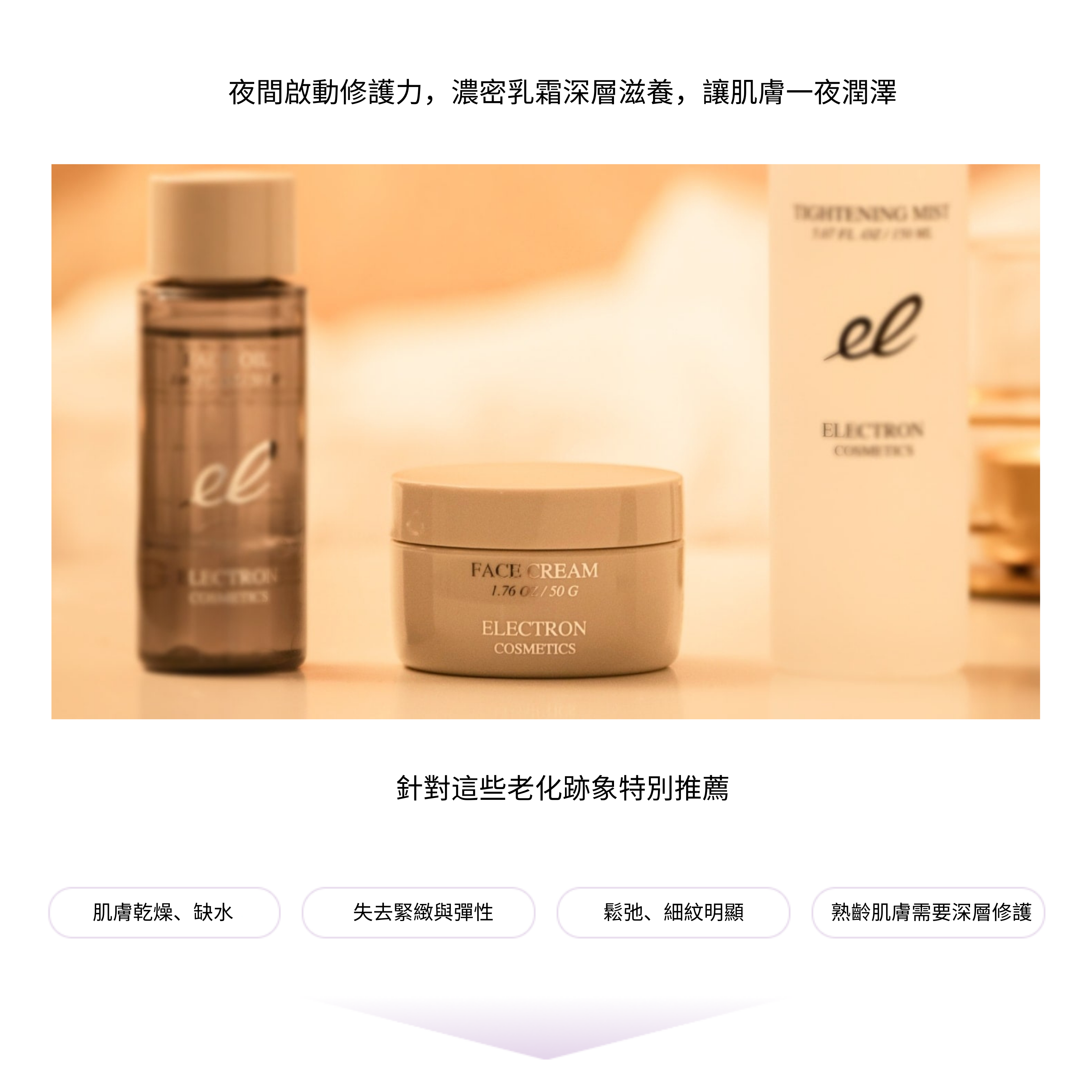 FACE CREAM 修護晚霜是一款針對熟齡肌膚設計的夜間高效修護霜,結合活性電子水™與多重抗老成分,能在睡眠中深層滋養、緊緻與提亮肌膚。