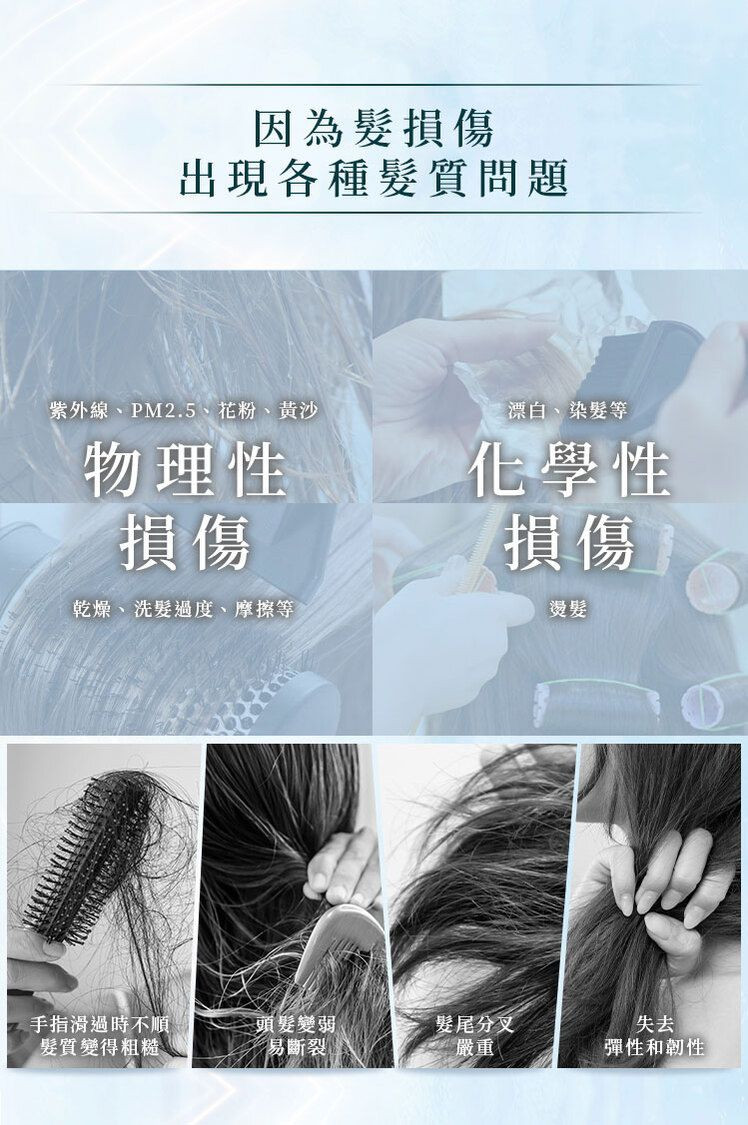 • 抵禦熱傷害(吹風機、電棒等),維持髮絲水潤