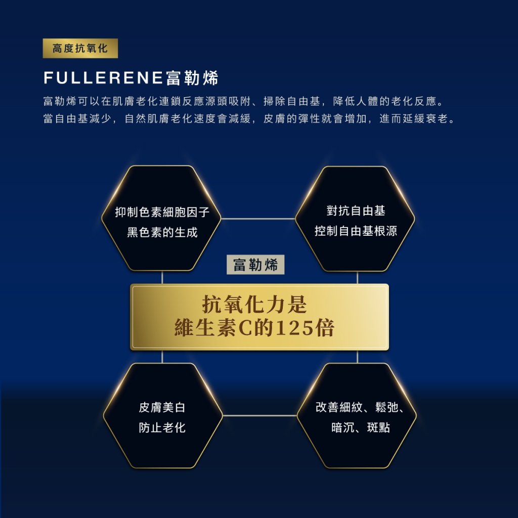 2. 美白亮膚:添加抗氧化力高達維生素C的125倍的「富勒烯」,有效提亮膚色、改善暗沉。