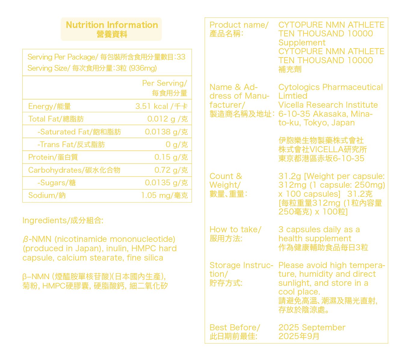 • 高純度99%日本產NMN原料,以天然酵素發酵法提煉