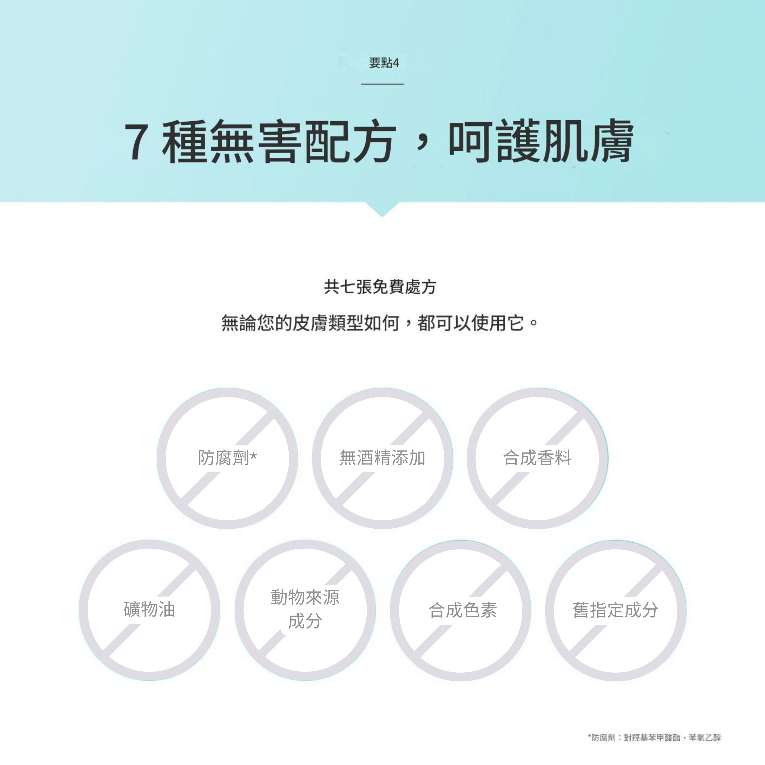 • 不含酒精、Paraben、礦物油等刺激成分,敏感肌也能安心使用。