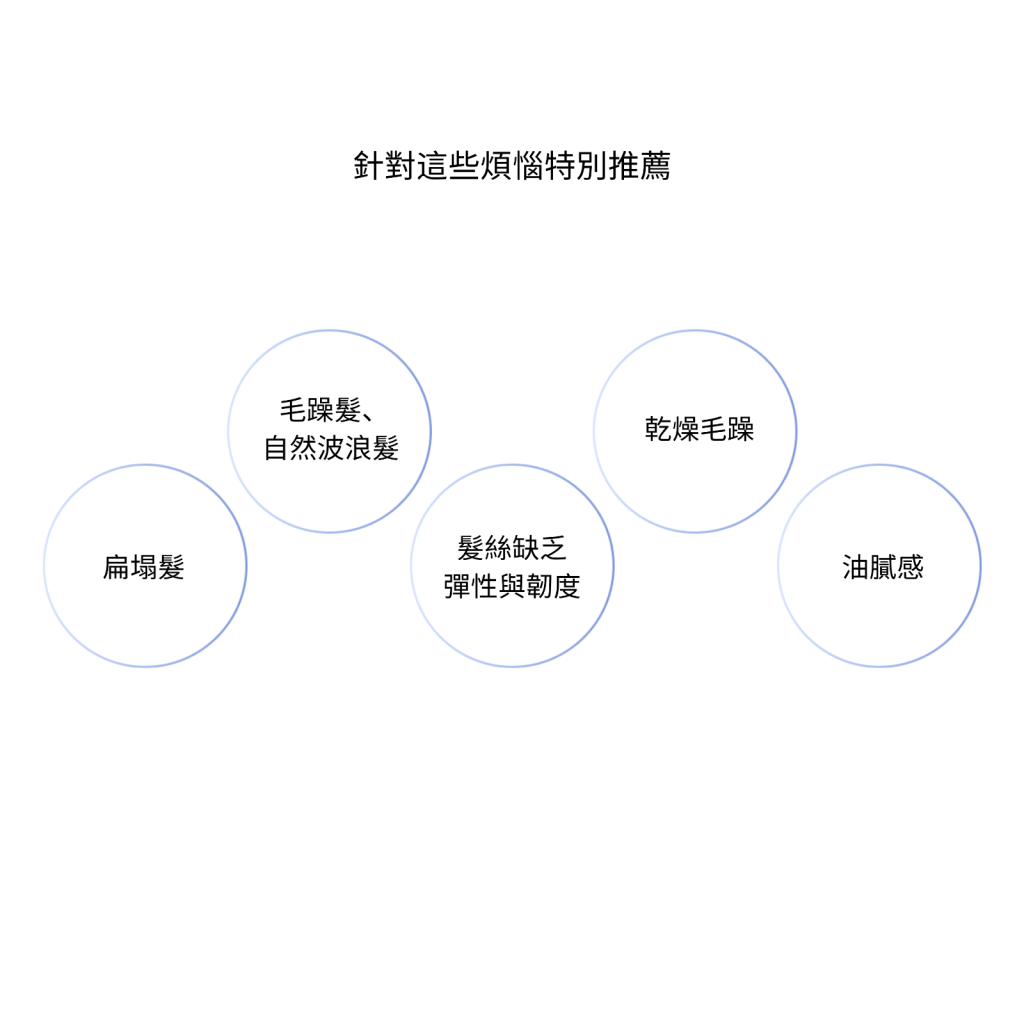 • 滲透力強,營養直達髮根,改善乾燥、扁塌、易斷髮問題