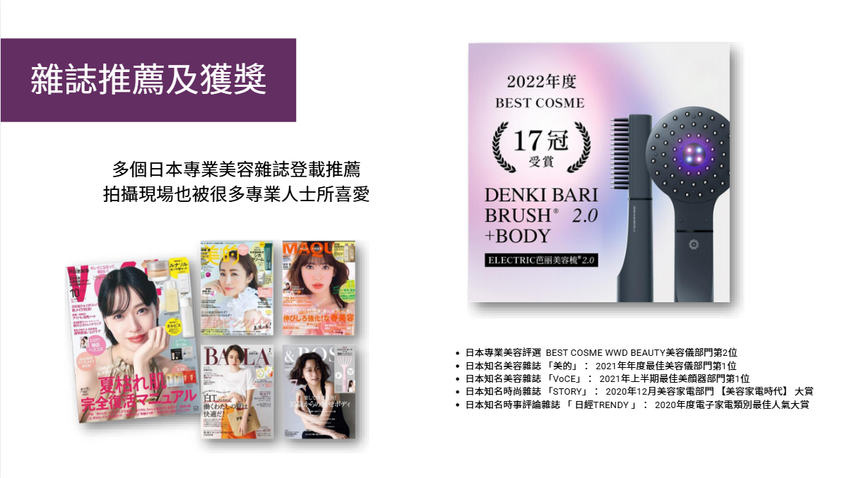 效果上顯得更寬。ELECTRIC DENKI BARI BRUSH®能放鬆腱膜,促進代謝排出骨縫的老化物讓頭骨和頭皮變得緊致。