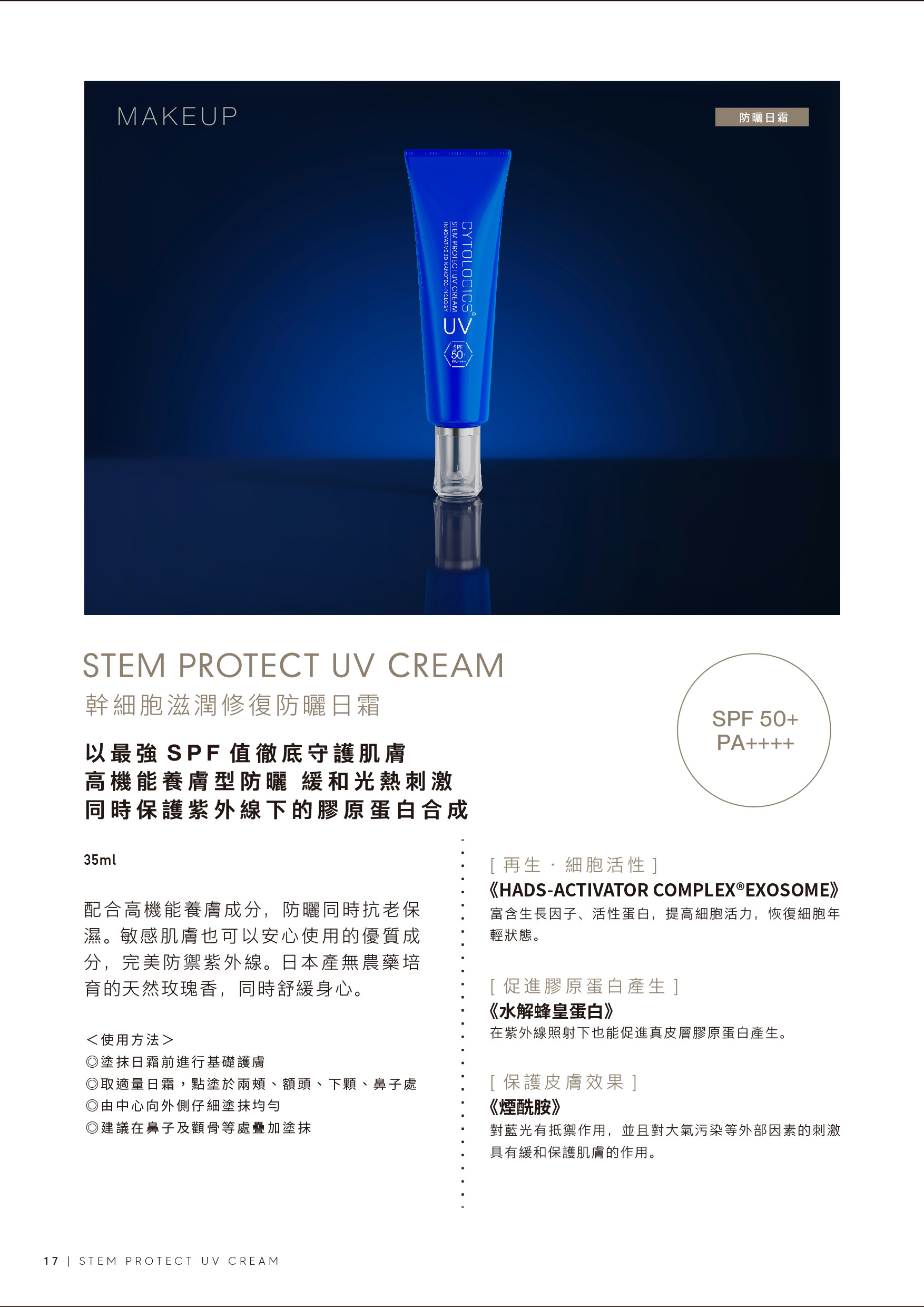 Stem Protect UV Cream SPF50+ PA++++ 是一款集修護與防護的高端防曬日霜,擁有最高防曬係數,徹底阻擋紫外線與藍光